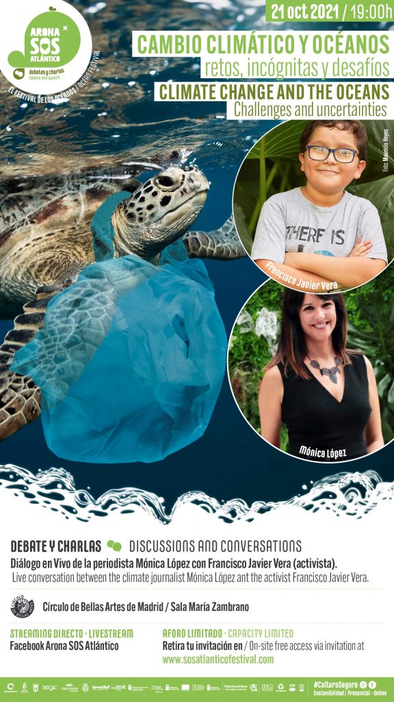La periodista Mónica López dialoga con Francisco Javier Vera, activista de 12 años en defensa de la vida y la conservación de la naturaleza y fundador del Movimiento planetario Guardianes por la Vida Sostenible, que ha recibido este año el reconocimiento de la Alta Comisionada para los Derechos Humanos de la ONU. Esta charla se celebra en el marco de la presentación del Festival Sostenible Arona SOS Atlántico, con sede en Tenerife, La Gomera y Lanzarote, que se celebrará durante los meses de octubre, noviembre y diciembre de 2021.