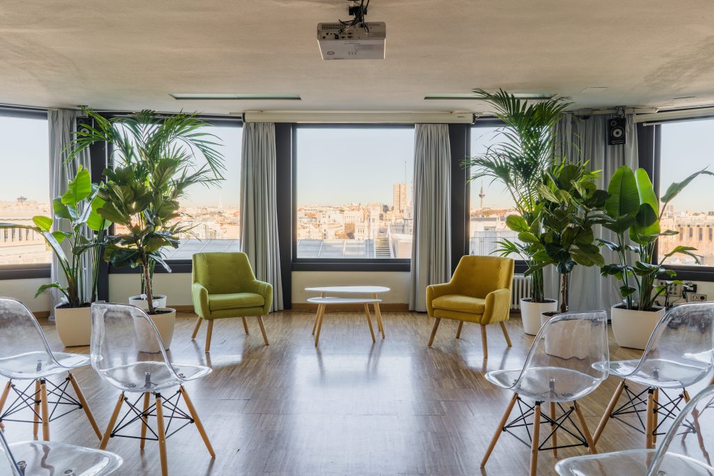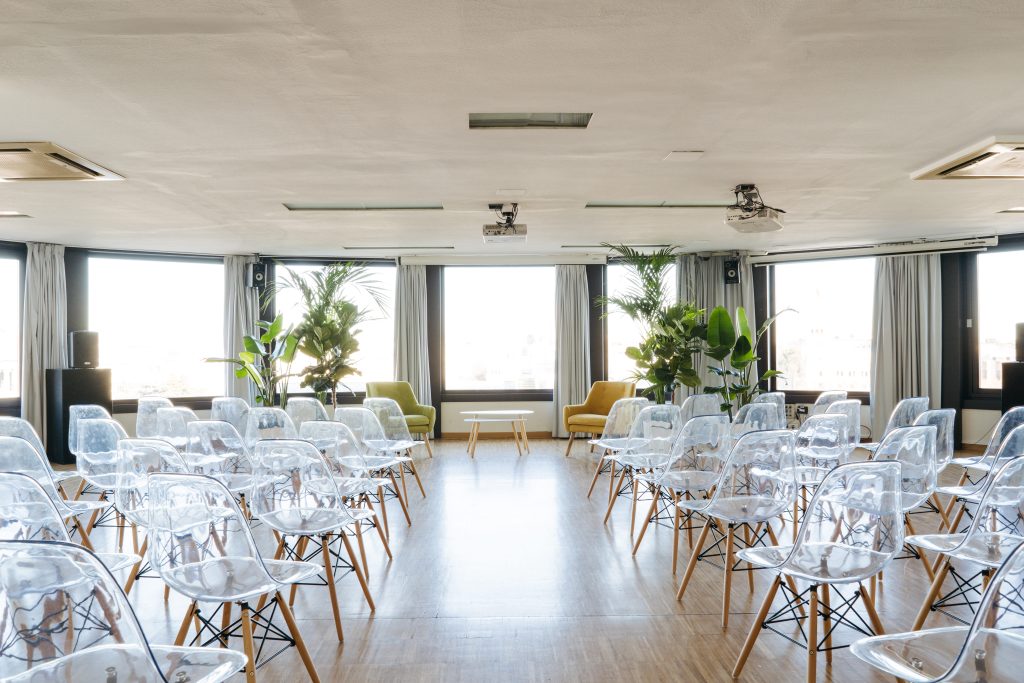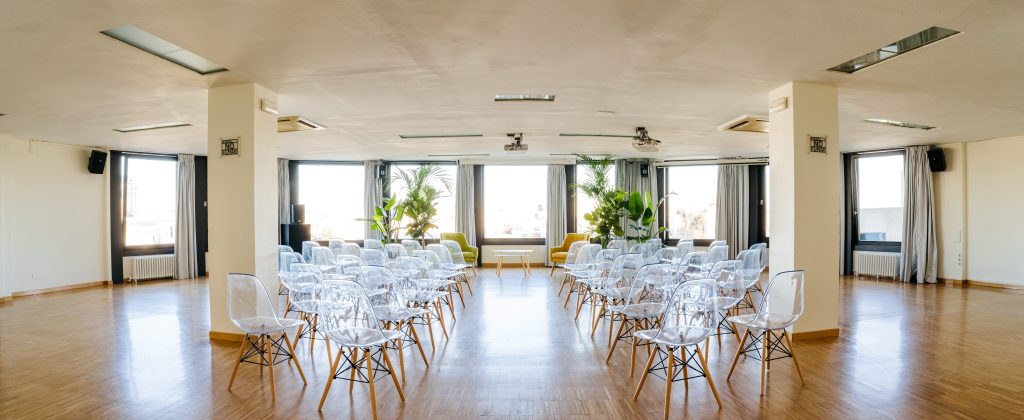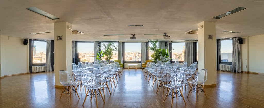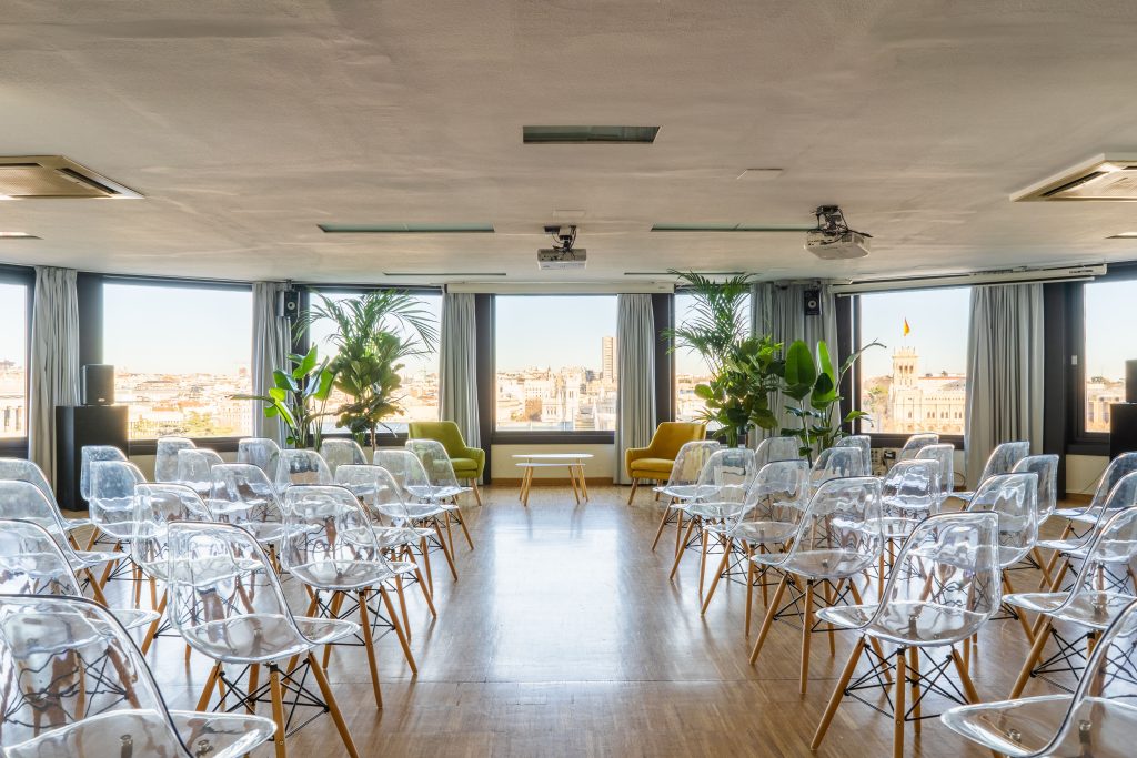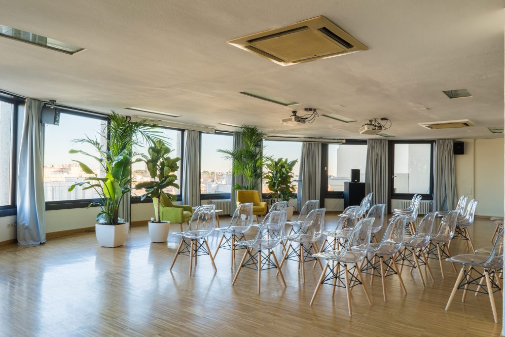 La sala María Zambrano cuenta con ventanales con espectaculares vistas cubriendo gran parte de sus paredes en círculo, esta luminosa sala cuenta con 150 metros cuadrados y puede albergar entre 110 y 140 personas. Cuenta con una superficie de ciento cincuenta metros cuadrados y recibe el nombre de la insigne pensadora, filósofa y ensayista española.