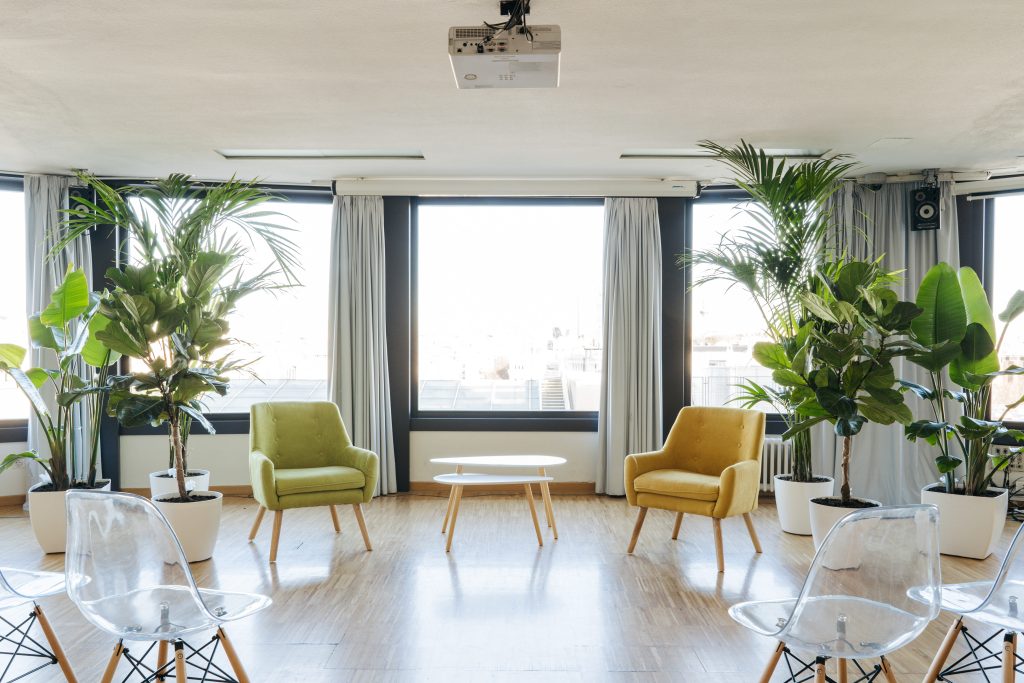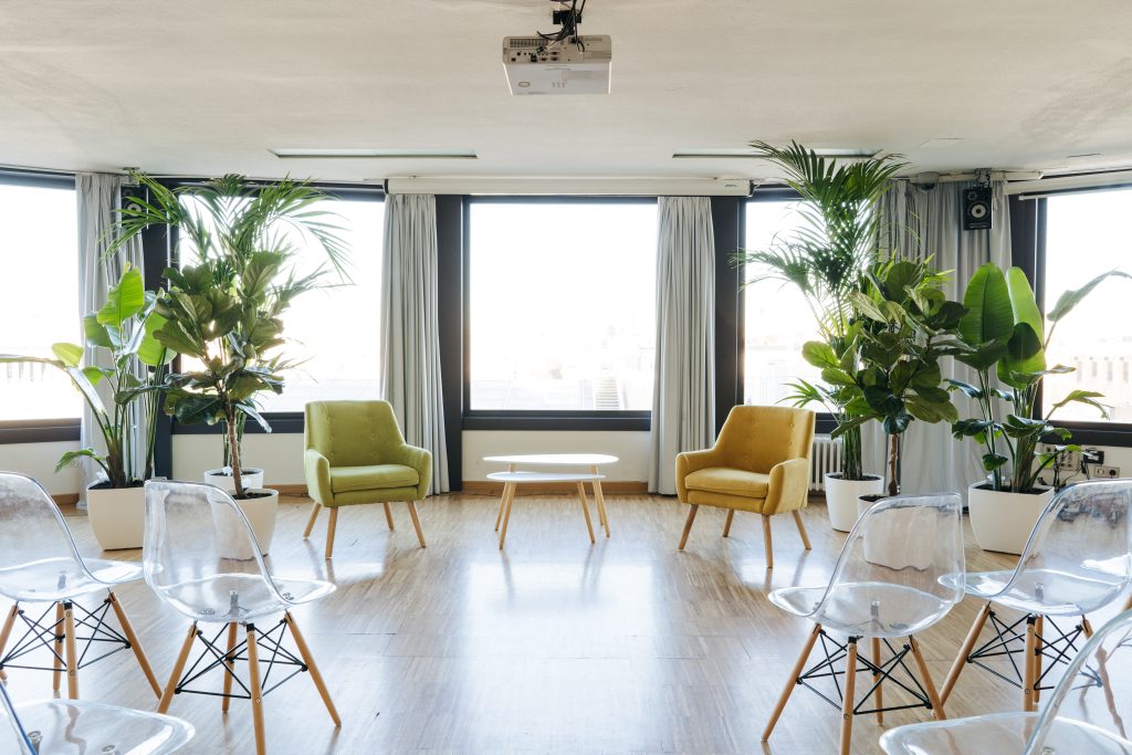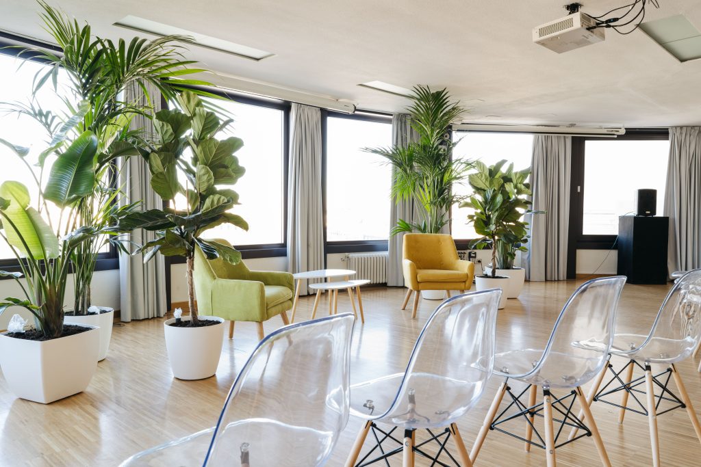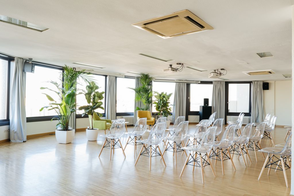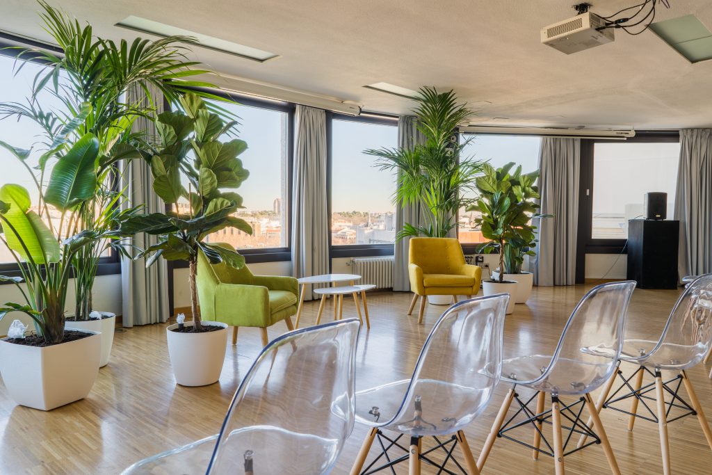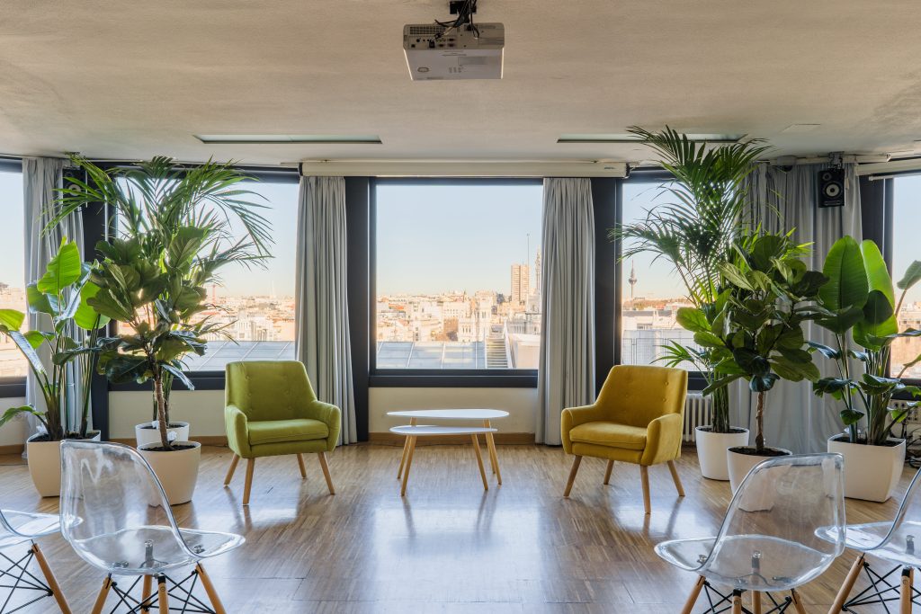 La sala María Zambrano cuenta con ventanales con espectaculares vistas cubriendo gran parte de sus paredes en círculo, esta luminosa sala cuenta con 150 metros cuadrados y puede albergar entre 110 y 140 personas. Cuenta con una superficie de ciento cincuenta metros cuadrados y recibe el nombre de la insigne pensadora, filósofa y ensayista española.