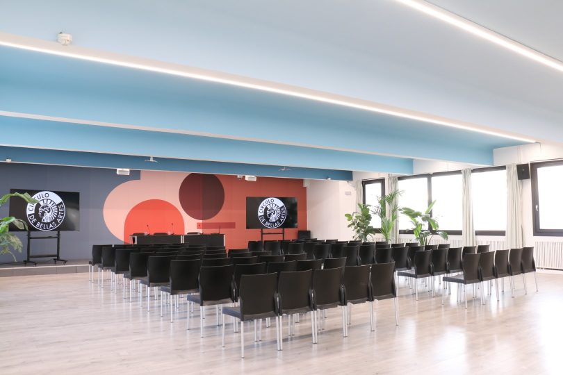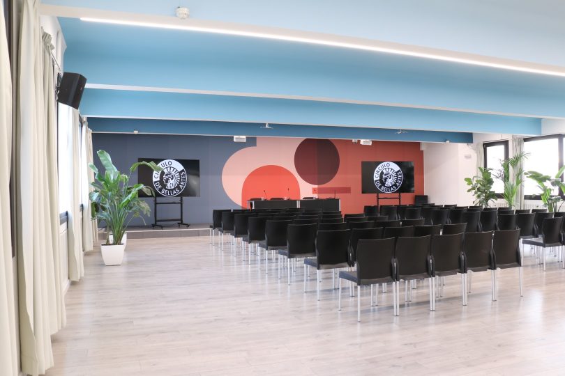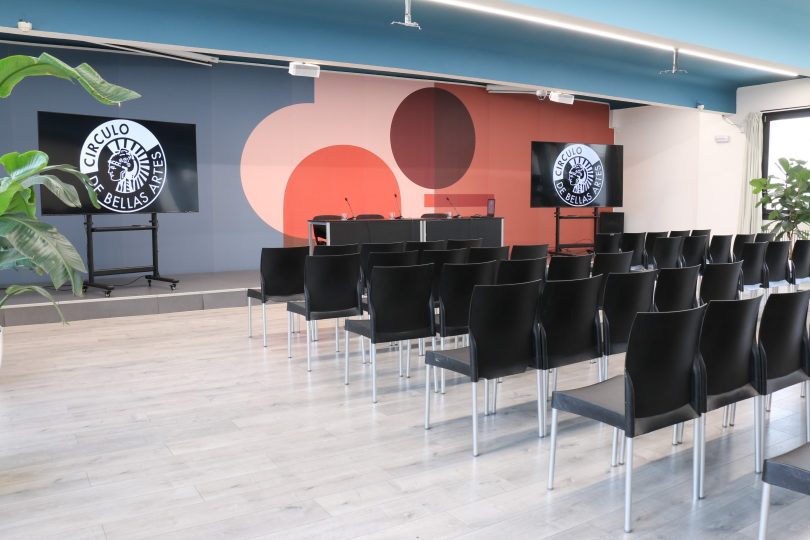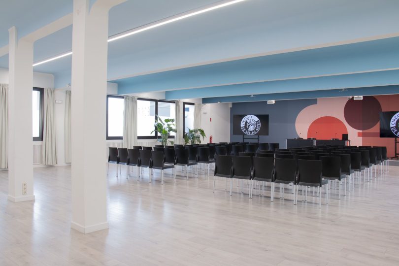 Esta sala de doscientos metros cuadrados de extensión está situada en la quinta planta del edificio, que a finales de los años noventa experimentó una remodelación fruto de la cual se habilitaron aquí cuatro salas destinadas a la actividad cultural. En este espacio se celebran habitualmente presentaciones, conferencias y mesas redondas, entre otras actividades.