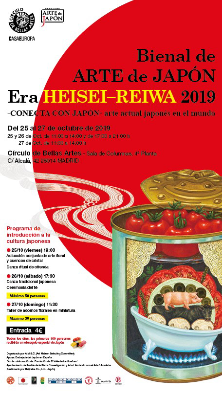 El Círculo de Bellas Artes vuelve a convertirse en la sede de esta bienal de arte. En su sexta edición –en la que se conmemora la entrada de Japón en la era Reiwa–, se expondrán obras de artistas de los dos países protagonistas: podrán verse piezas de estilo ukiyo-e (reimpresiones realizadas por artesanos contemporáneos) y grabados europeos de entre los sigos XVII y XIX. Paralelamente a la exposición, el programa de la bienal incluye actividades vinculadas a la cultura nipona, como danzas tradicionales, arreglos florales o la ceremonia del té.