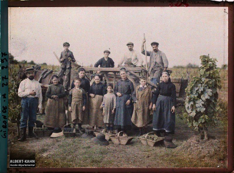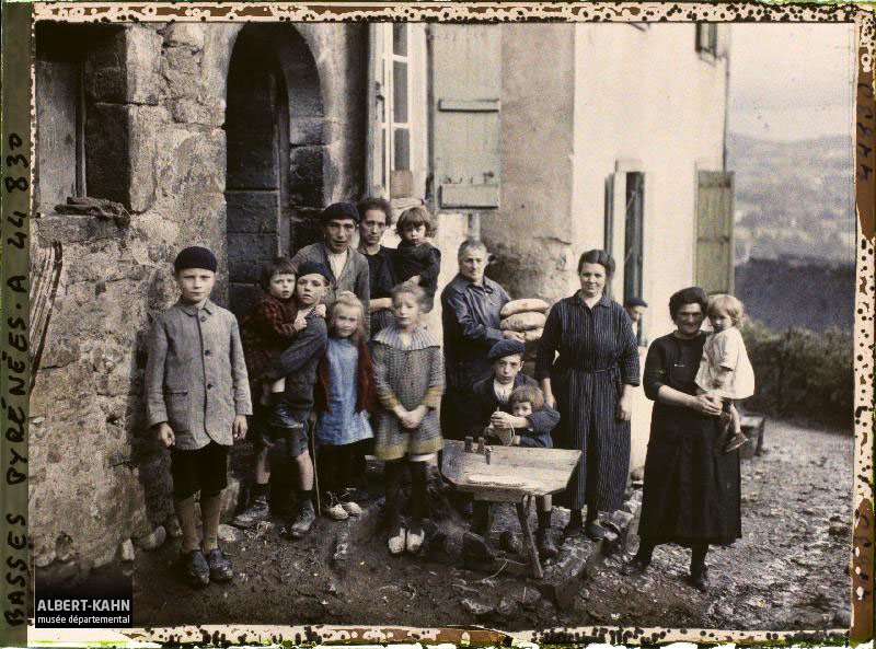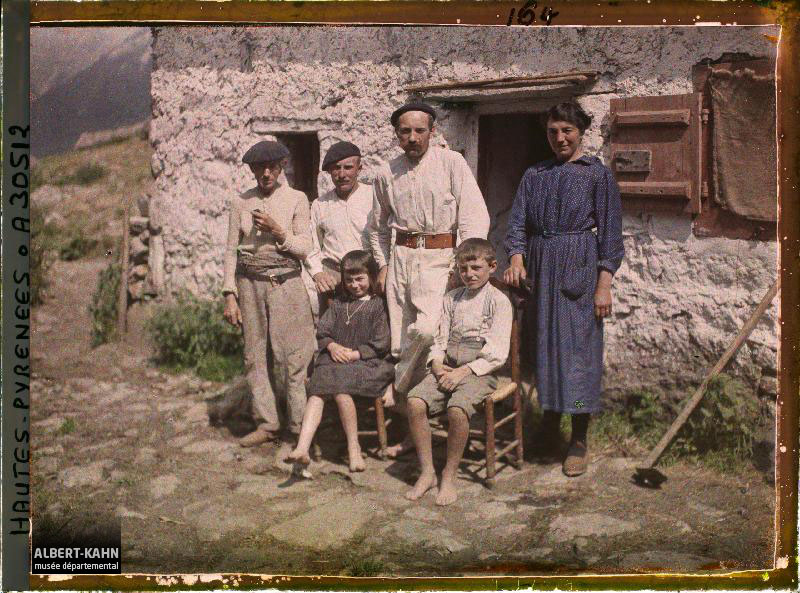 Roger Dumas, Département des Hauts-de-Seine, musée Albert-Kahn, Archives de la Planète, A 68 630 X Famille dans un potager devant sa maison, Orne, Normandie, France, 4 juin 1911, (Autochrome, 9 x 12 cm),