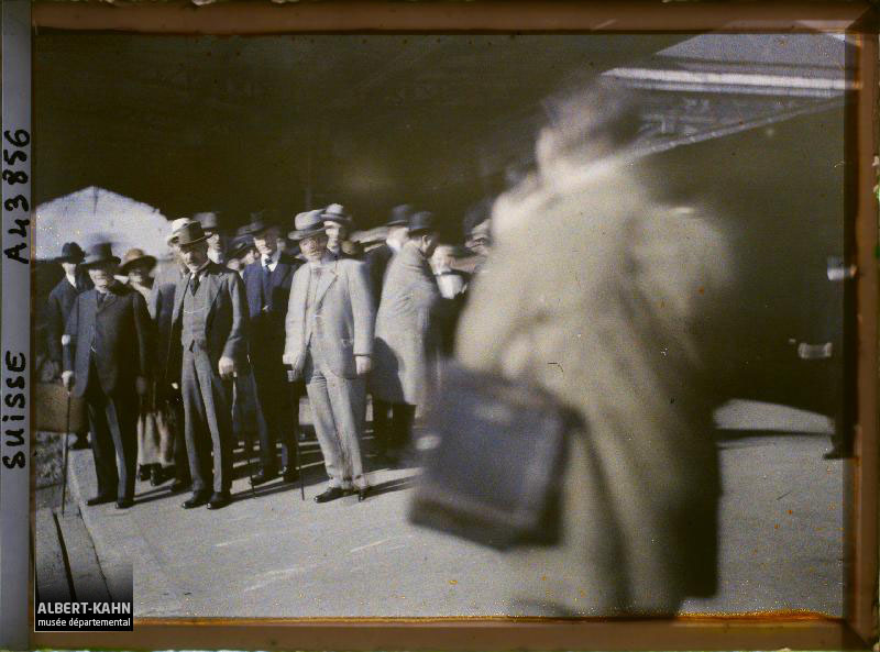 Stéphane Passet (?), Département des Hauts-de-Seine, musée Albert-Kahn, Archives de la Planète, A 71 928 Groupe de personnes posant devant les arcades, Dieppe, Seine-Maritime, Normandie, France, 12 septembre 1920, (Autochrome, 9 x 12 cm),