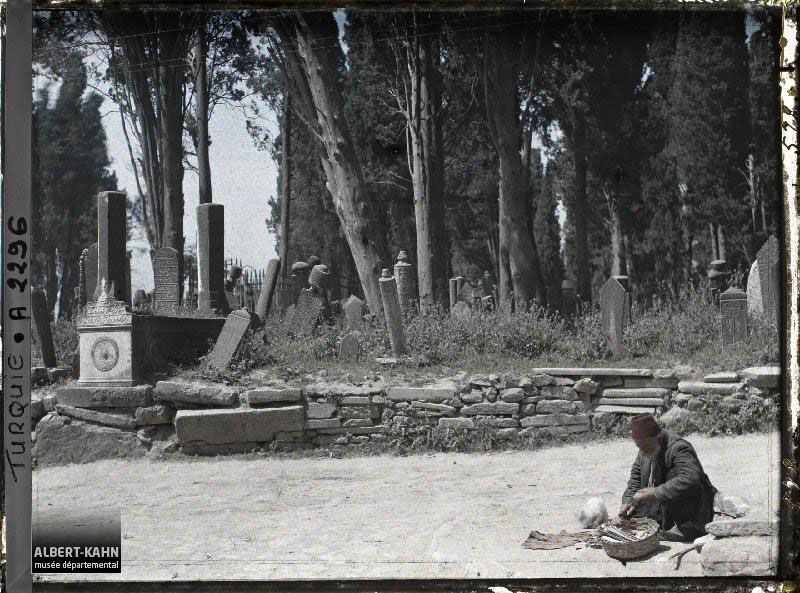 Turquie d'Asie, Scutari, Coin du Cimetière avec le bonhomme assis